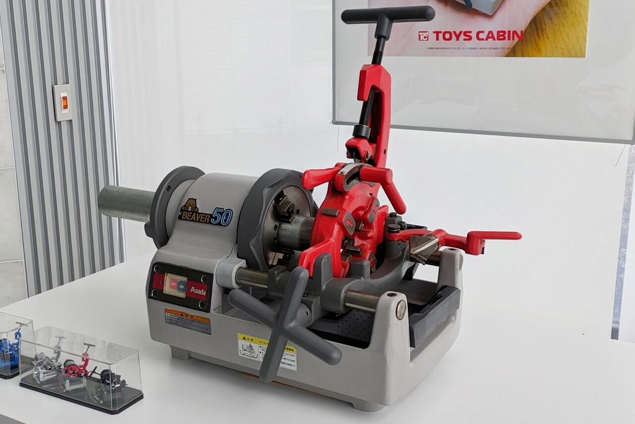 主に水道やガス関係の工事で使う鋼管やパイプなどを接合するために、ネジ加工をする機械だそう。