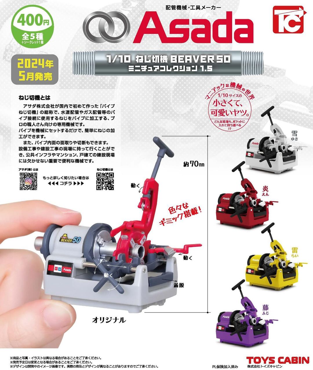 先ほどのねじ切機のガチャガチャ商品(ねじ切機ミニチュアコレクション)。