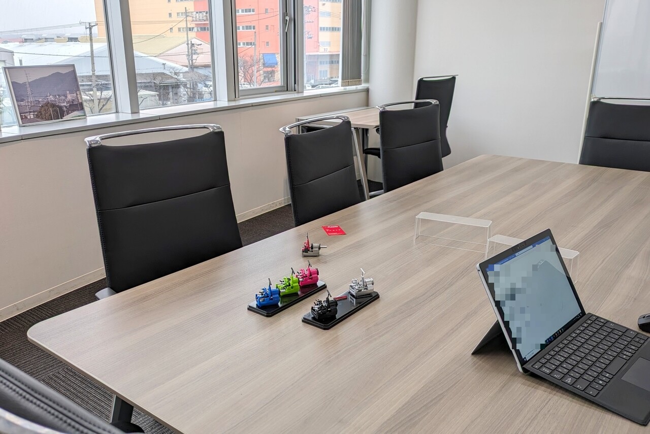 ということで、ミーティングルームっぽい部屋に入らせていただきました。