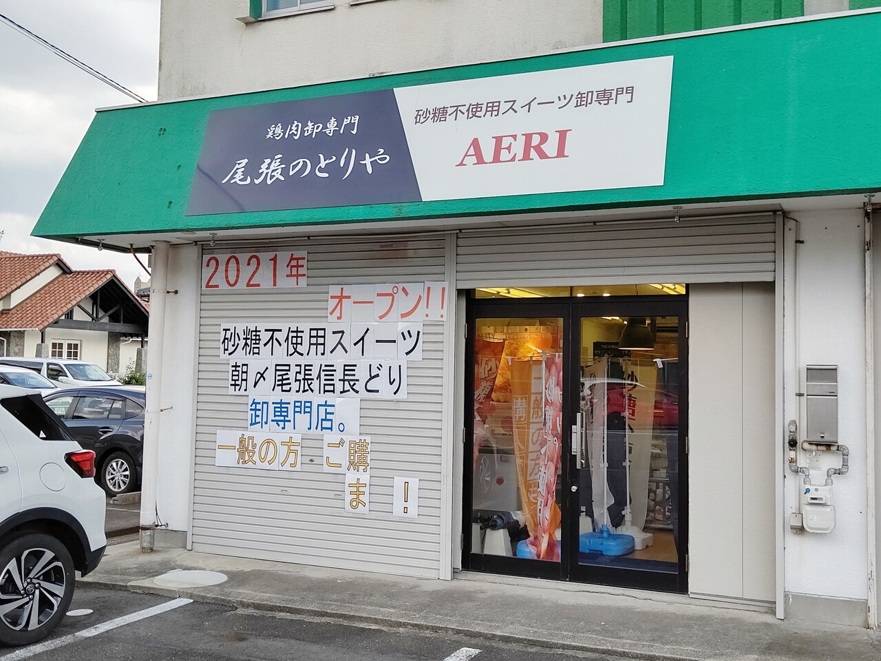 小牧市堀の内に鶏肉卸専門『尾張のとりや』と砂糖不使用スイーツ卸専門『AERI』がオープンするみたいです。