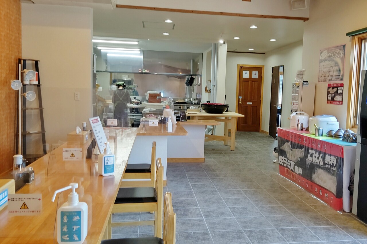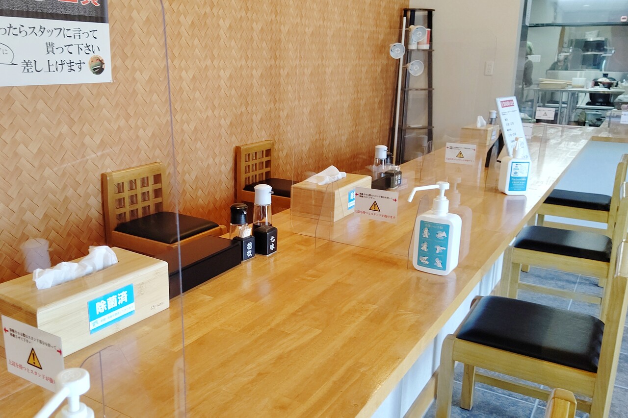 座席はカウンター式で、12席あります。新型コロナ対策もバッチリ。