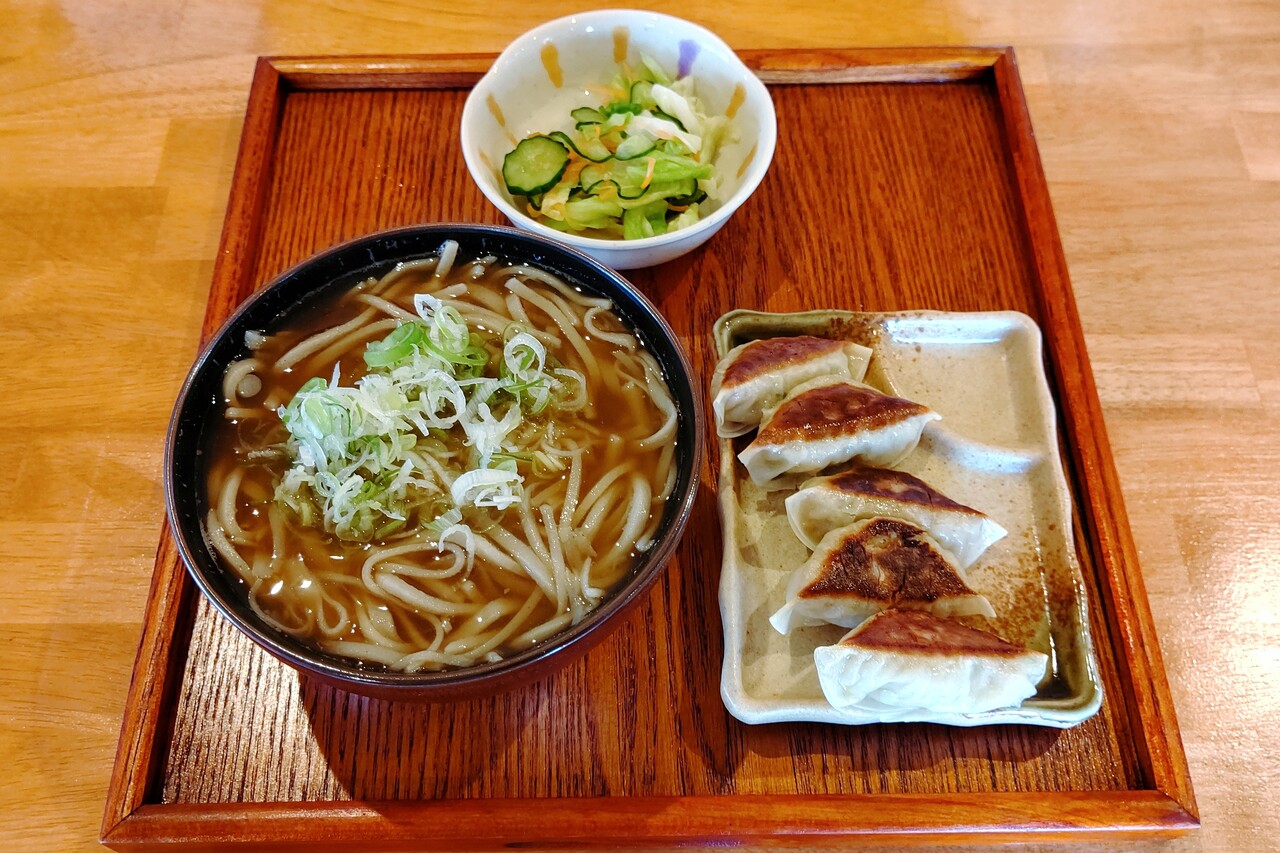 餃子がサービスで付いてきて、ごはんは無料でいただけます。