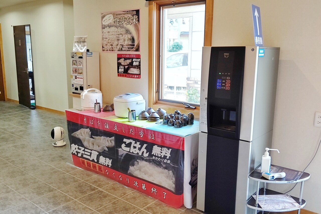 左奥に見える食券機で券を購入するスタイルです。お支払いは現金のみ。