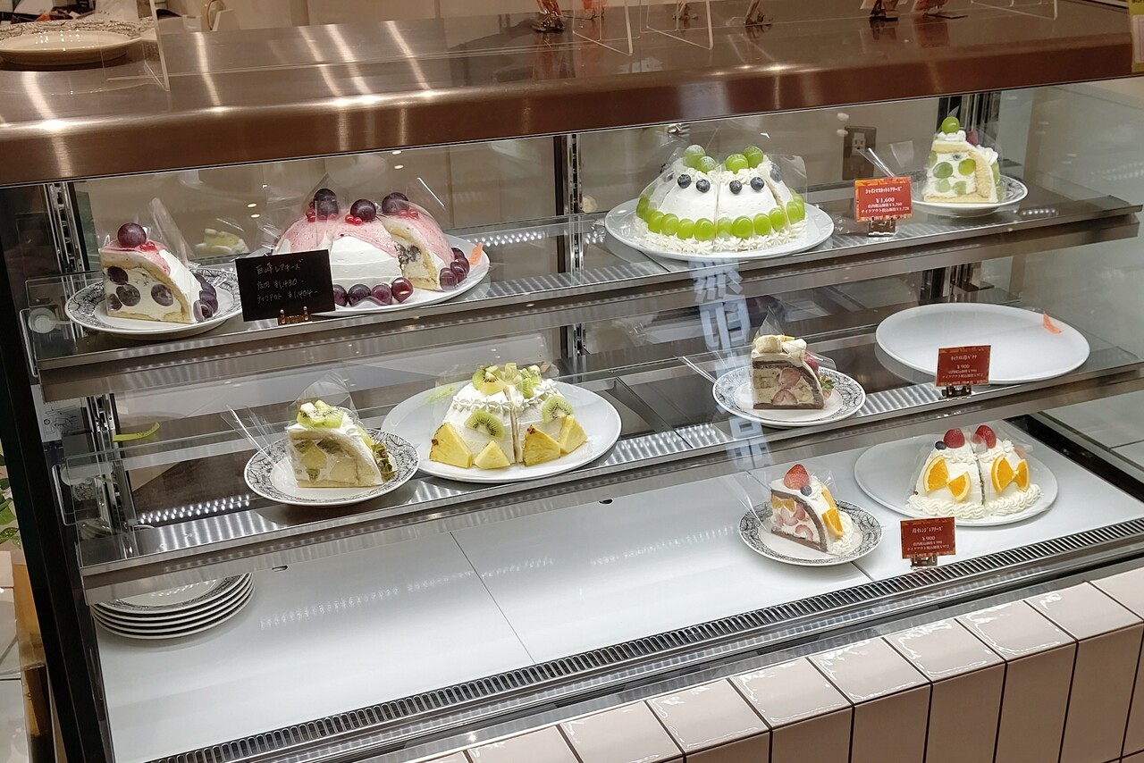 お店でショーケースに置かれているケーキの様子。