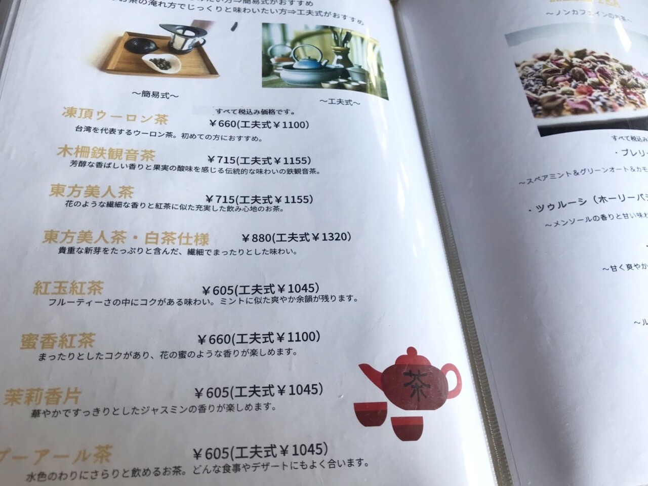 かなりの種類の紅茶にお菓子も。