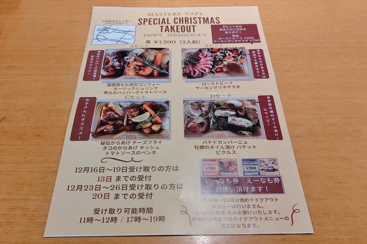 こちらはスペシャルクリスマステイクアウトメニュー。(※予約受付12/20まで)