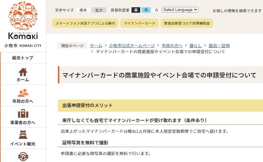 マイナンバーカードの商業施設やイベント会場での申請受付について|小牧市