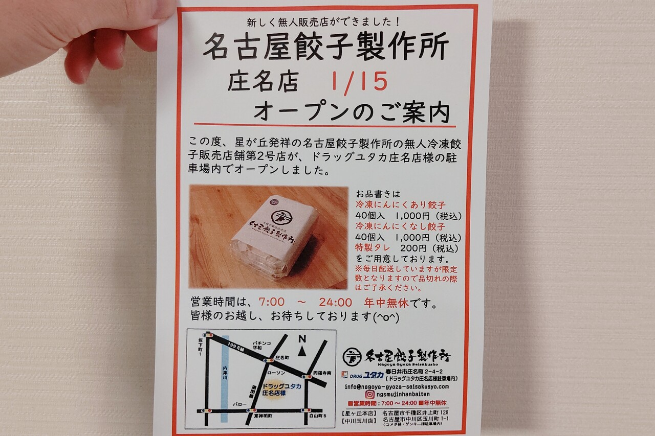 中部大学ちかくにあるドラッグユタカ庄名店の敷地内に「名古屋餃子製作所 庄名店」が1月15日にオープンしています。