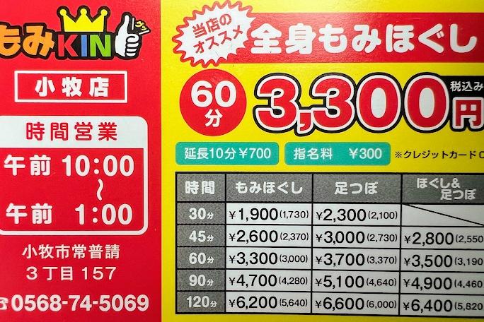 小牧市常普請に「もみKING 小牧店」という全身もみほぐしのお店ができていました。