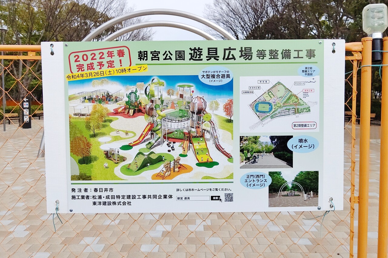 春日井市朝宮町にある「朝宮公園」の遊具広場がいよいよ完成します。