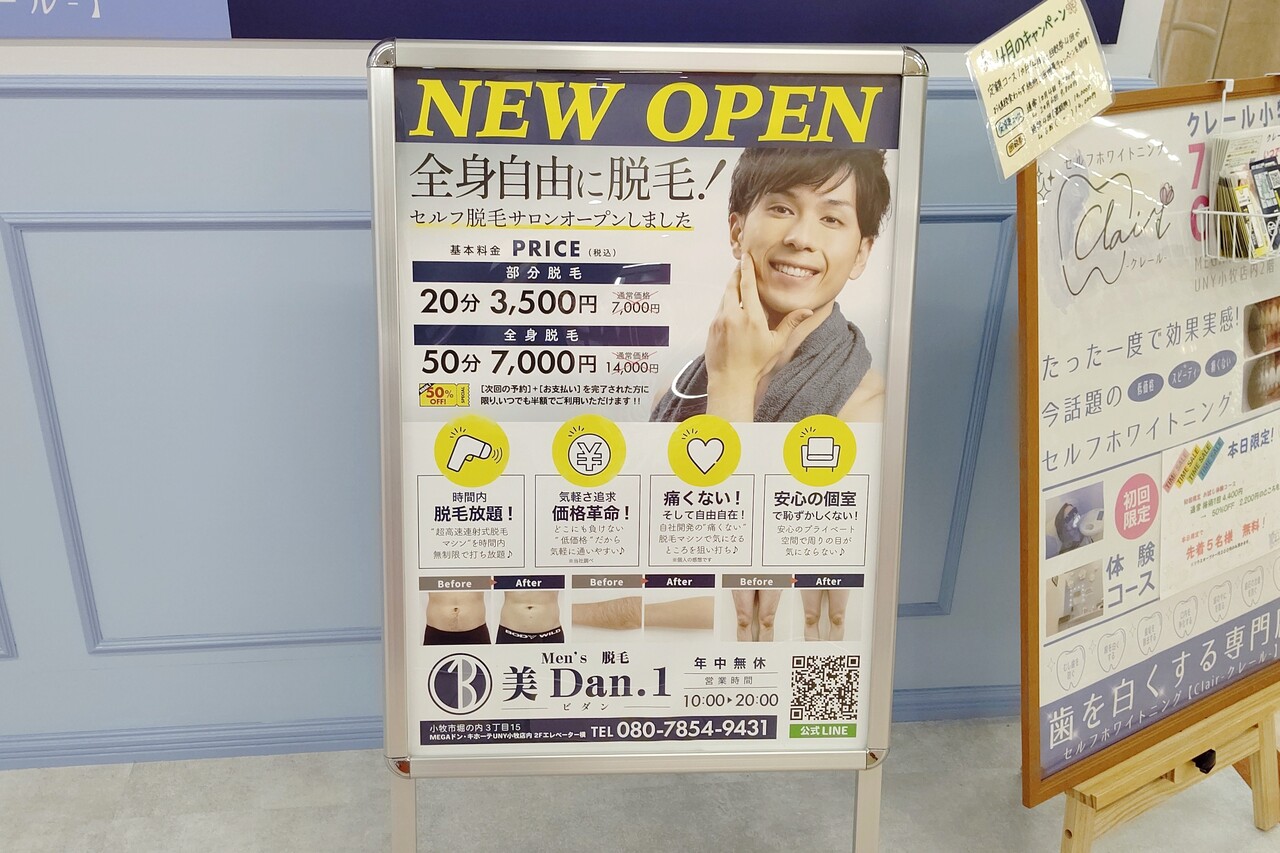 MEGAドン・キホーテUNY小牧店の2階に「Men's脱毛 美Dan.1」というお店ができていました。