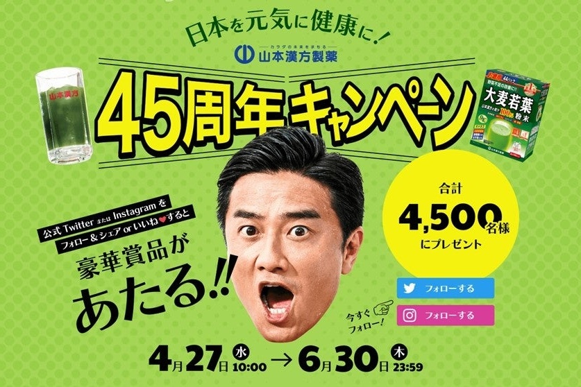 小牧市多気東町に本社を置く山本漢方製薬が『45周年キャンペーン』を実施しています。