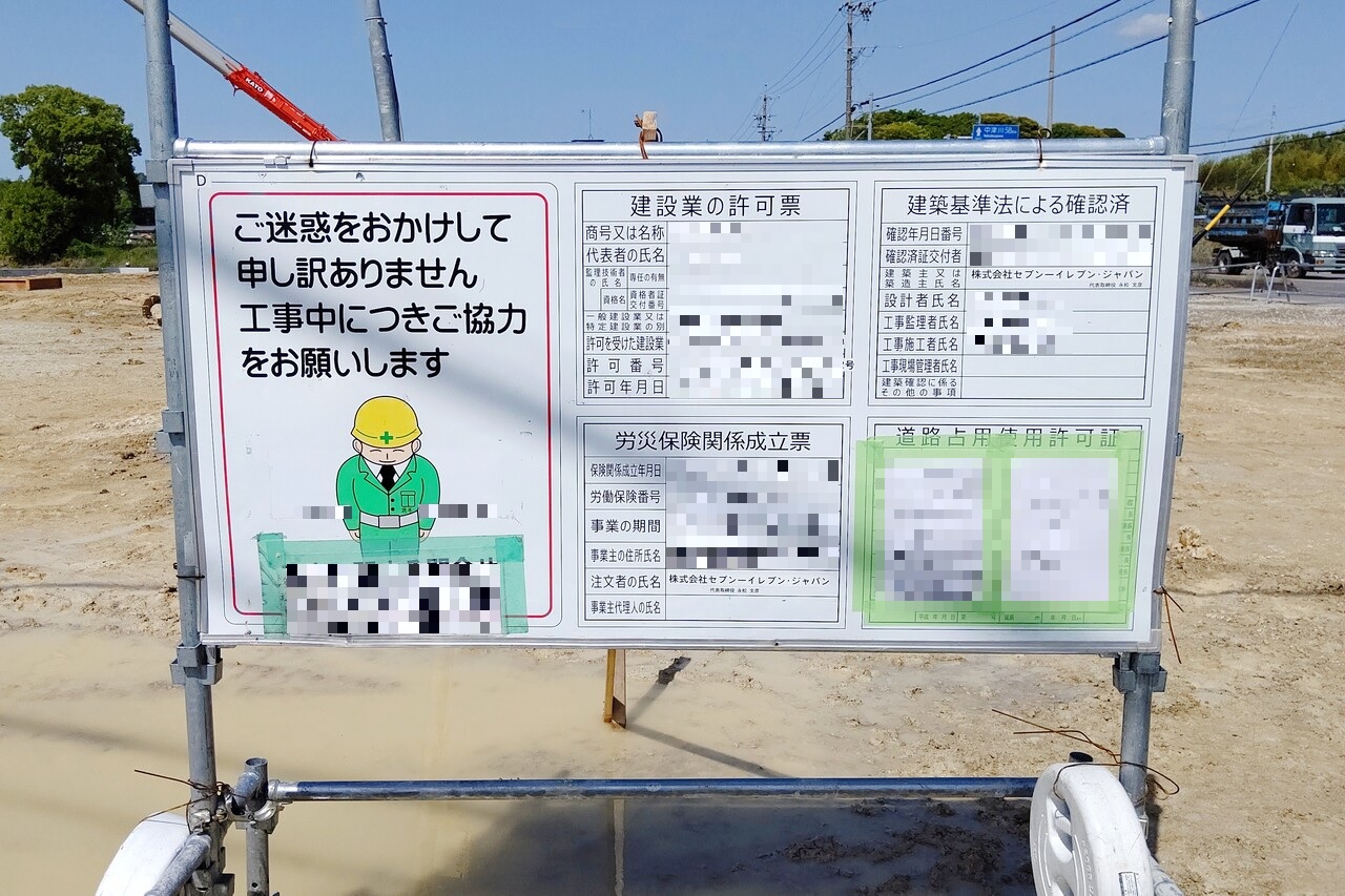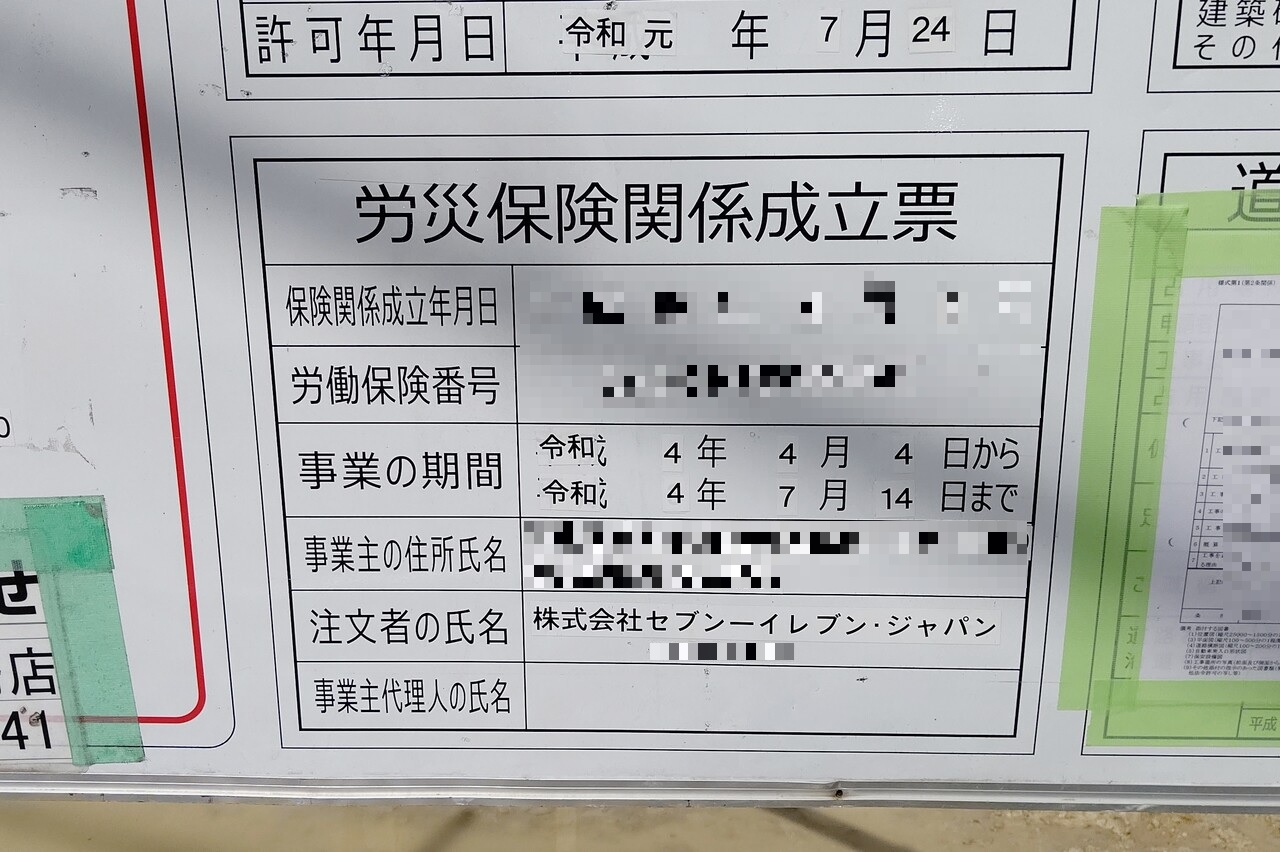 建築主や発注者の欄に「セブンーイレブン・ジャパン」の文字が。