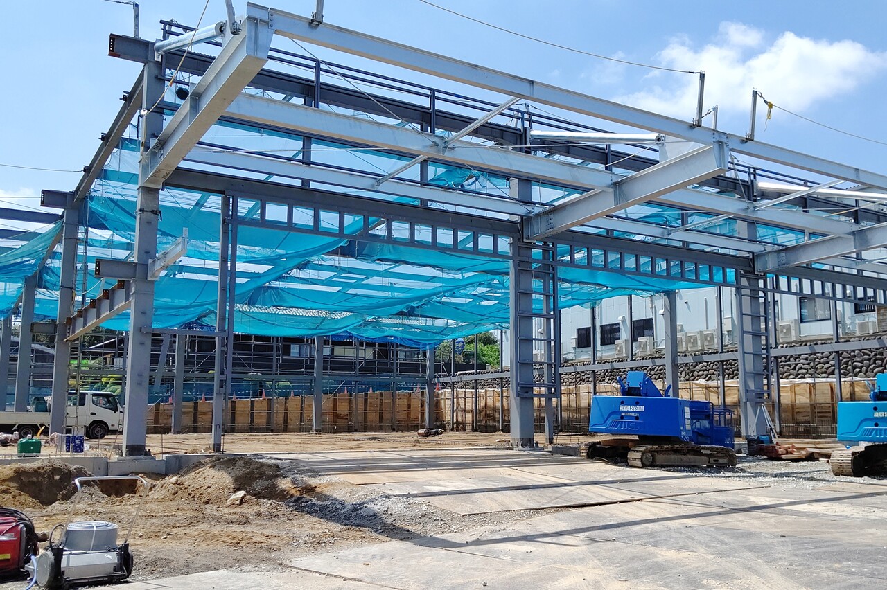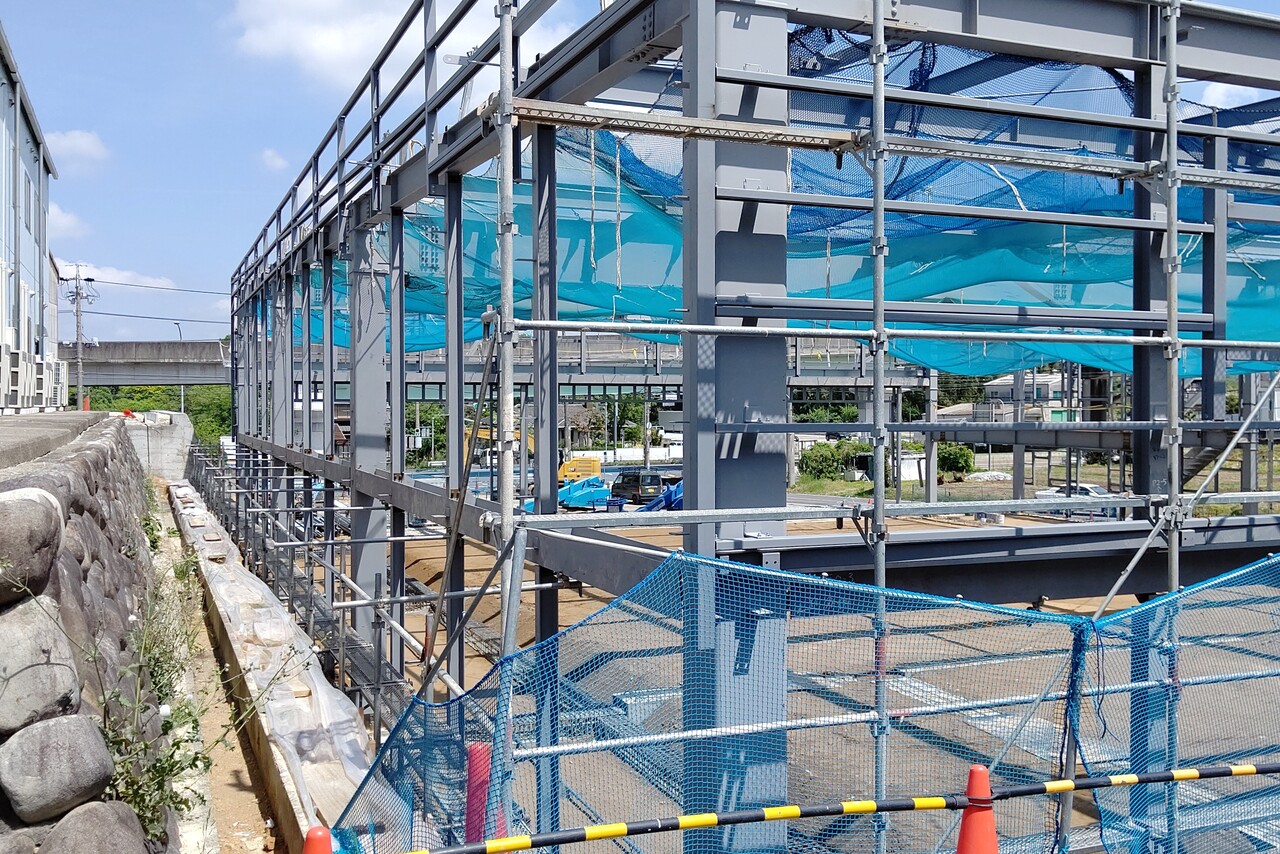 すでに地盤は平らになり、現在は建物の骨組みまで工事が進んでいるという状態ですね。