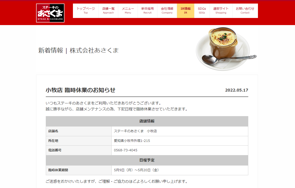 小牧市外堀の「ステーキのあさくま 小牧店」が改装工事中です。
