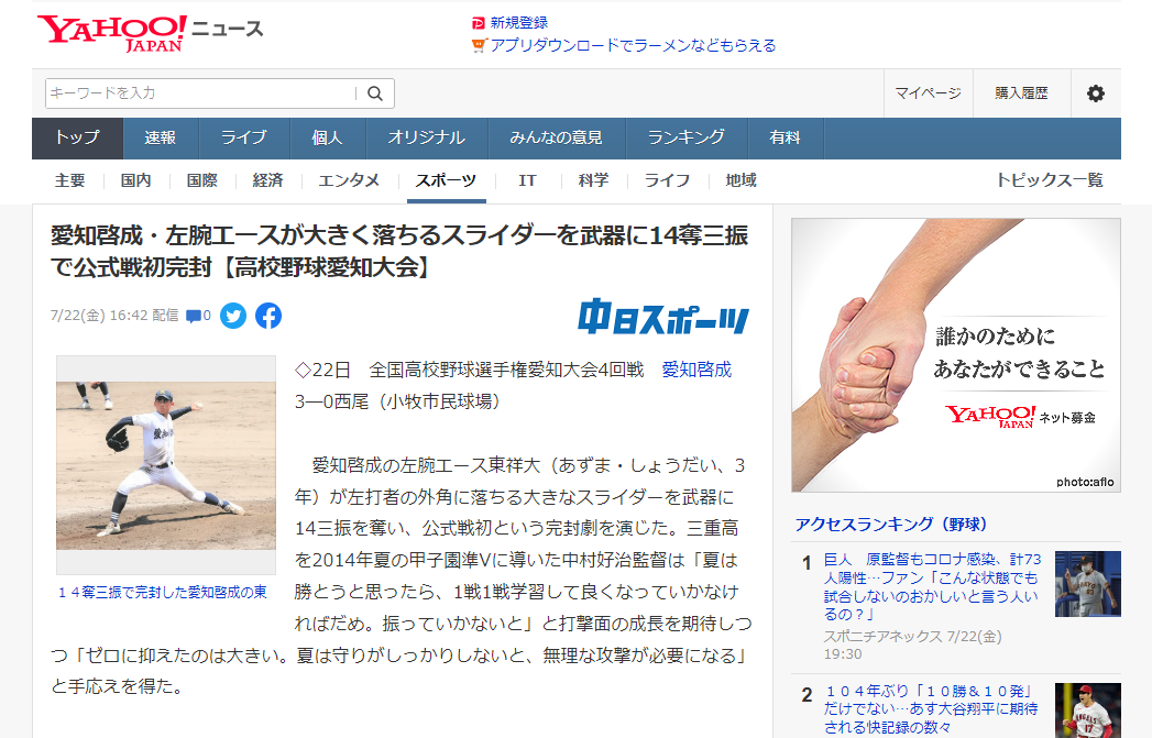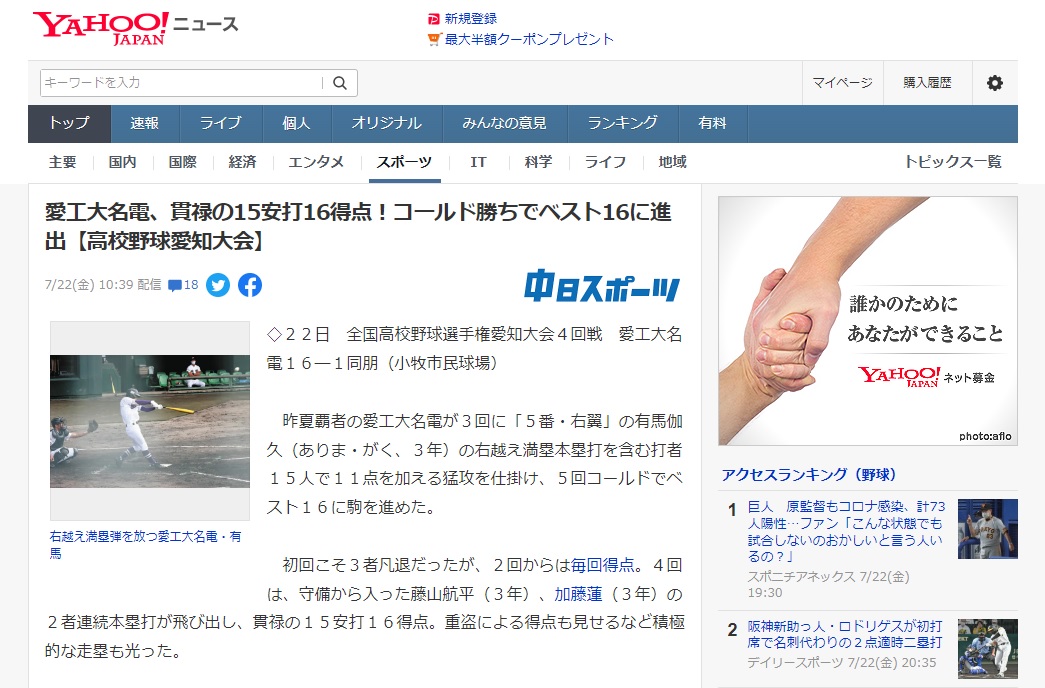 現在開催されている全国高校野球選手権(夏の甲子園)愛知大会。
