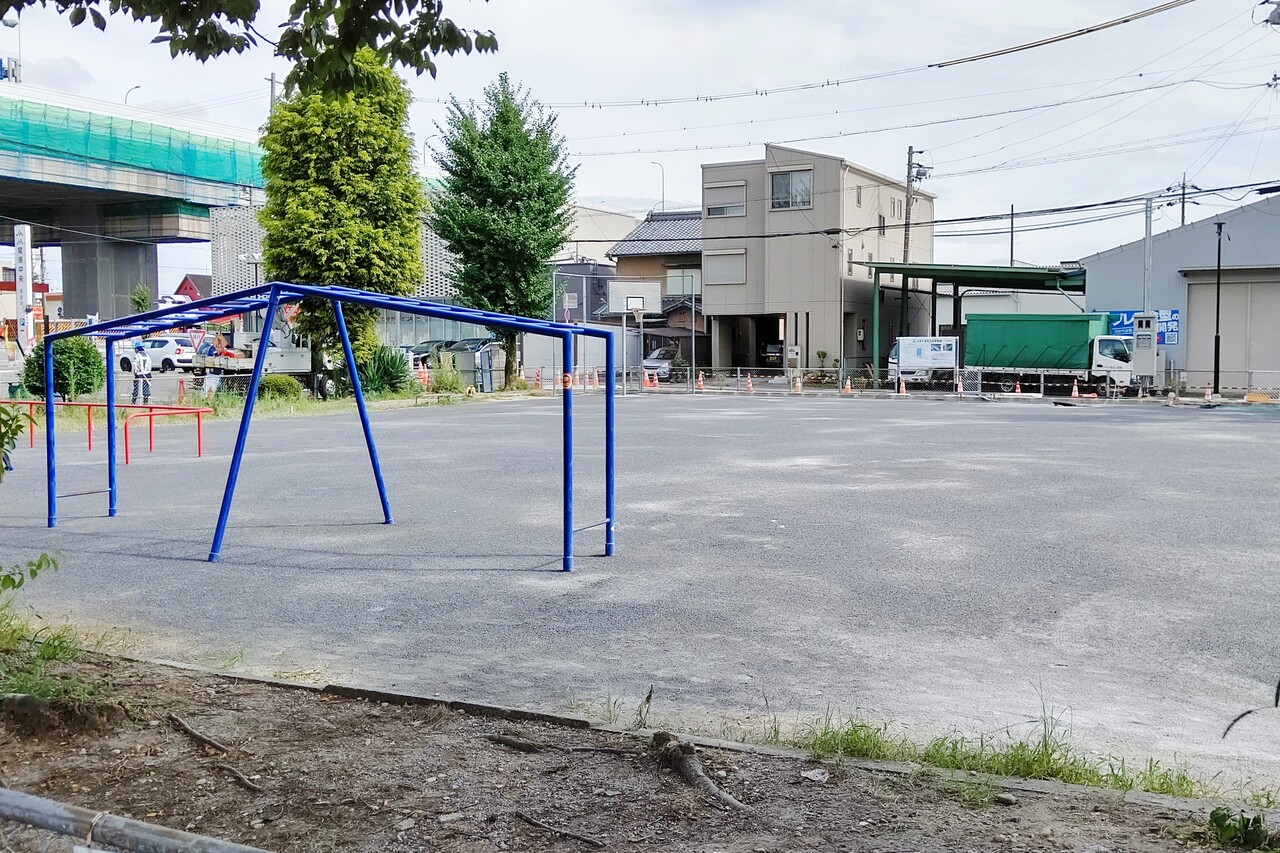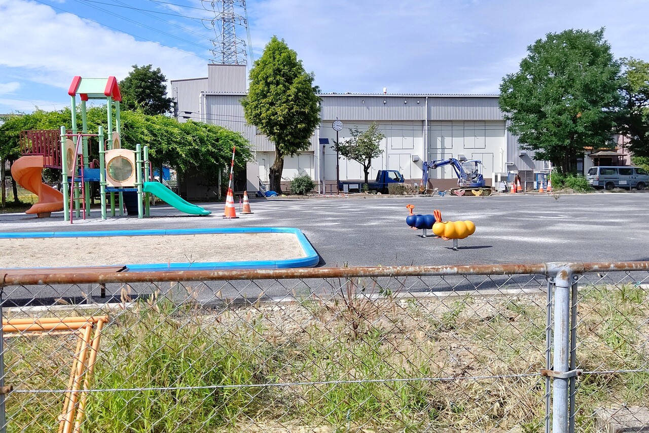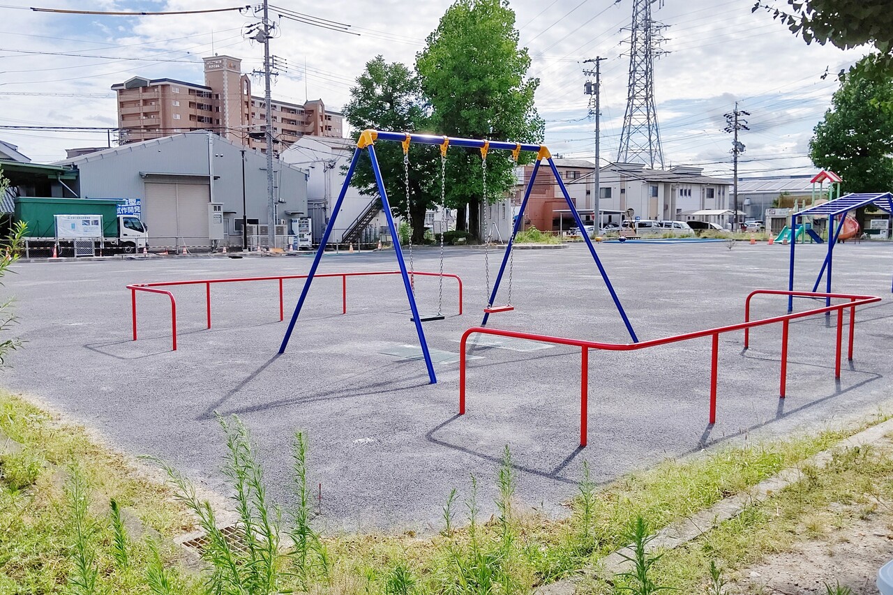 右側に写ってる2つの乗り物型遊具は新しいのかな...?