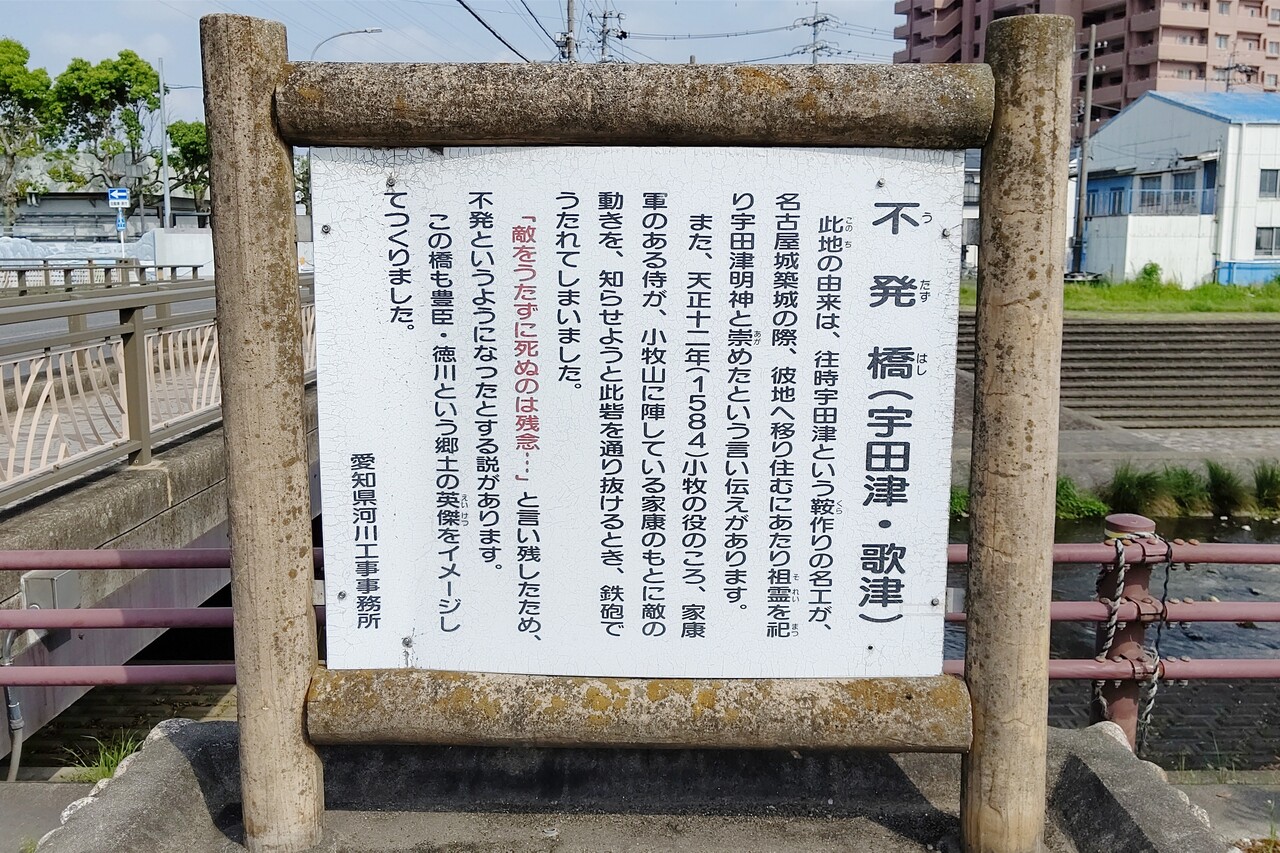 こちらが「不発橋」の写真。実際に小牧に存在する橋です。川は大山川。