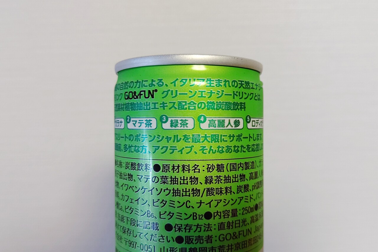 ガラナ、マテ茶、緑茶、高麗人参、ロディオラの5つが入っています。