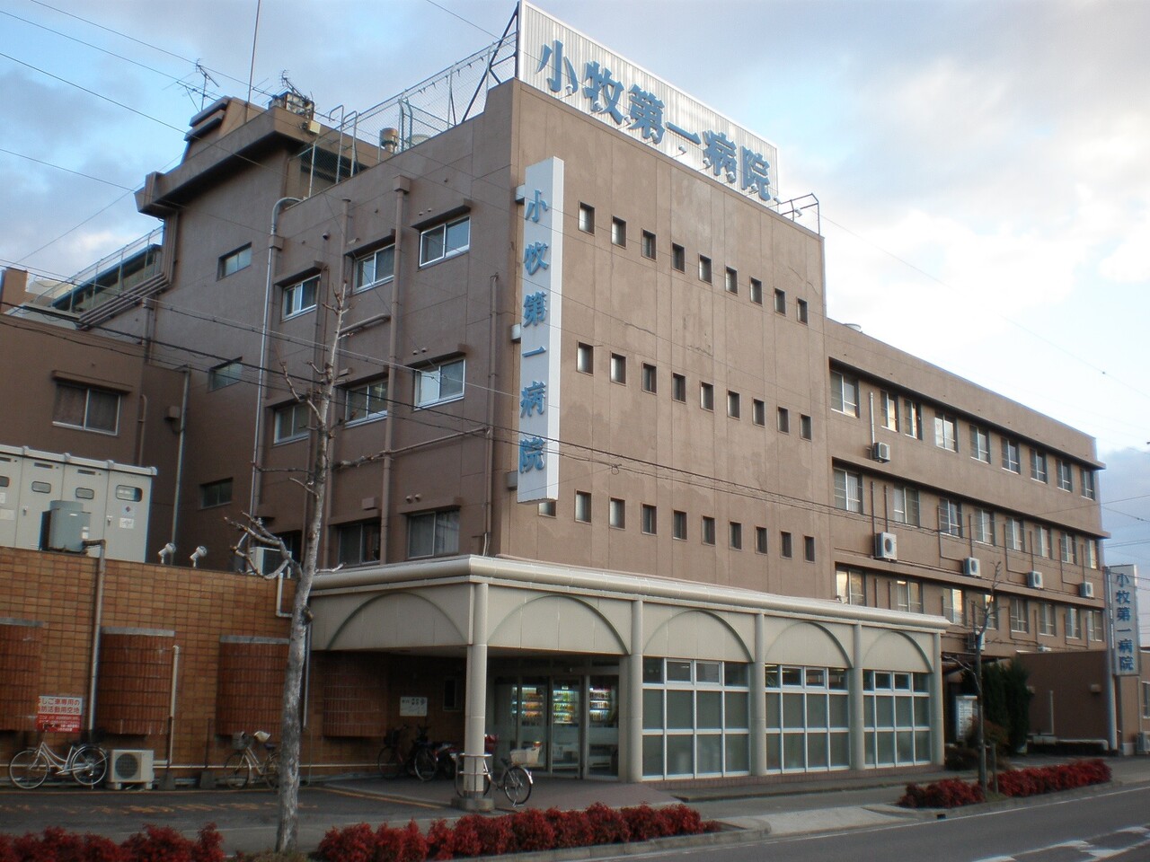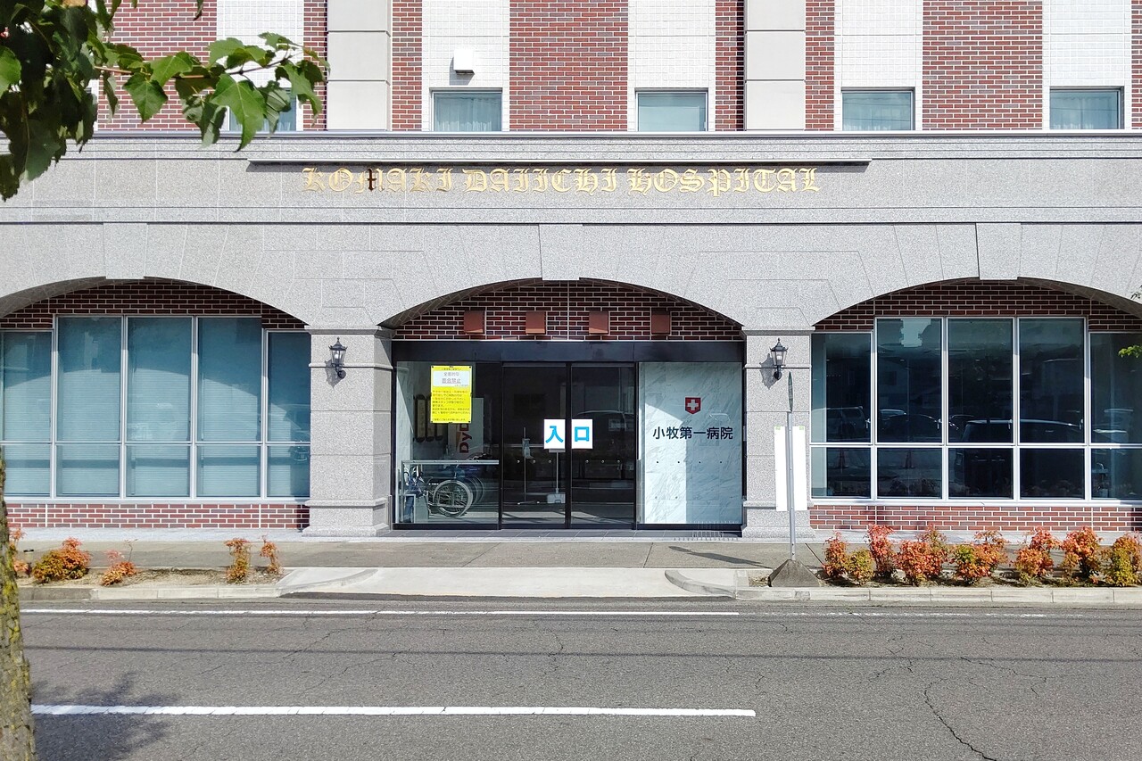 正面入り口。入り口上には「KOMAKI DAIICHI HOSPITAL」と書かれていますが、ちょっと書体が読みづらい。笑