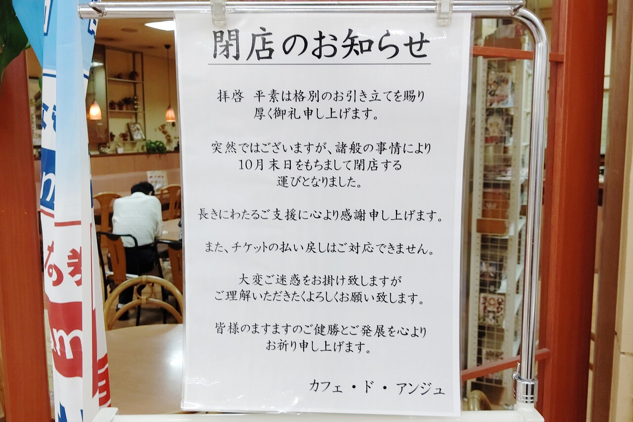 MEGAドン・キホーテUNY小牧店2階にある「カフェ・ド・アンジュ」が10月31日で閉店するようです。