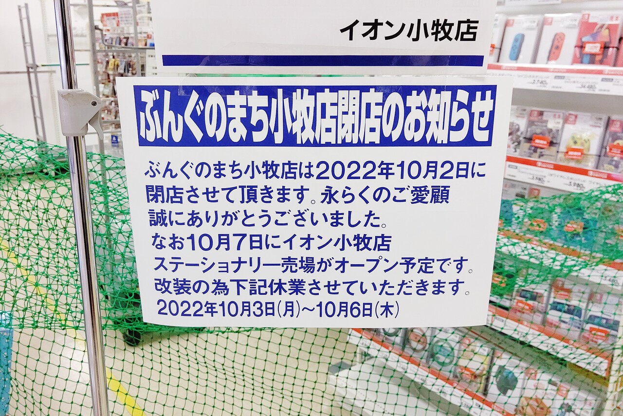 ただ、10月7日(金)に「イオン小牧店ステーショナリー売場」としてオープンするとのこと。