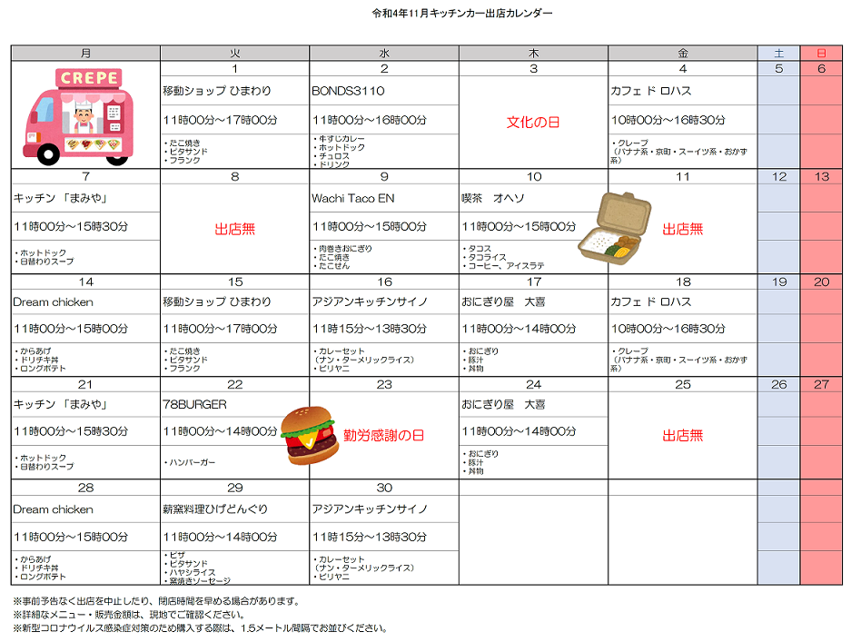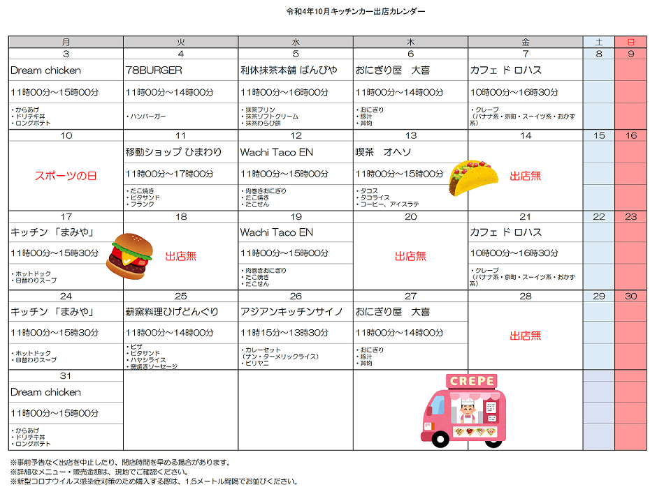 ・出店するキッチンカーは日替わり