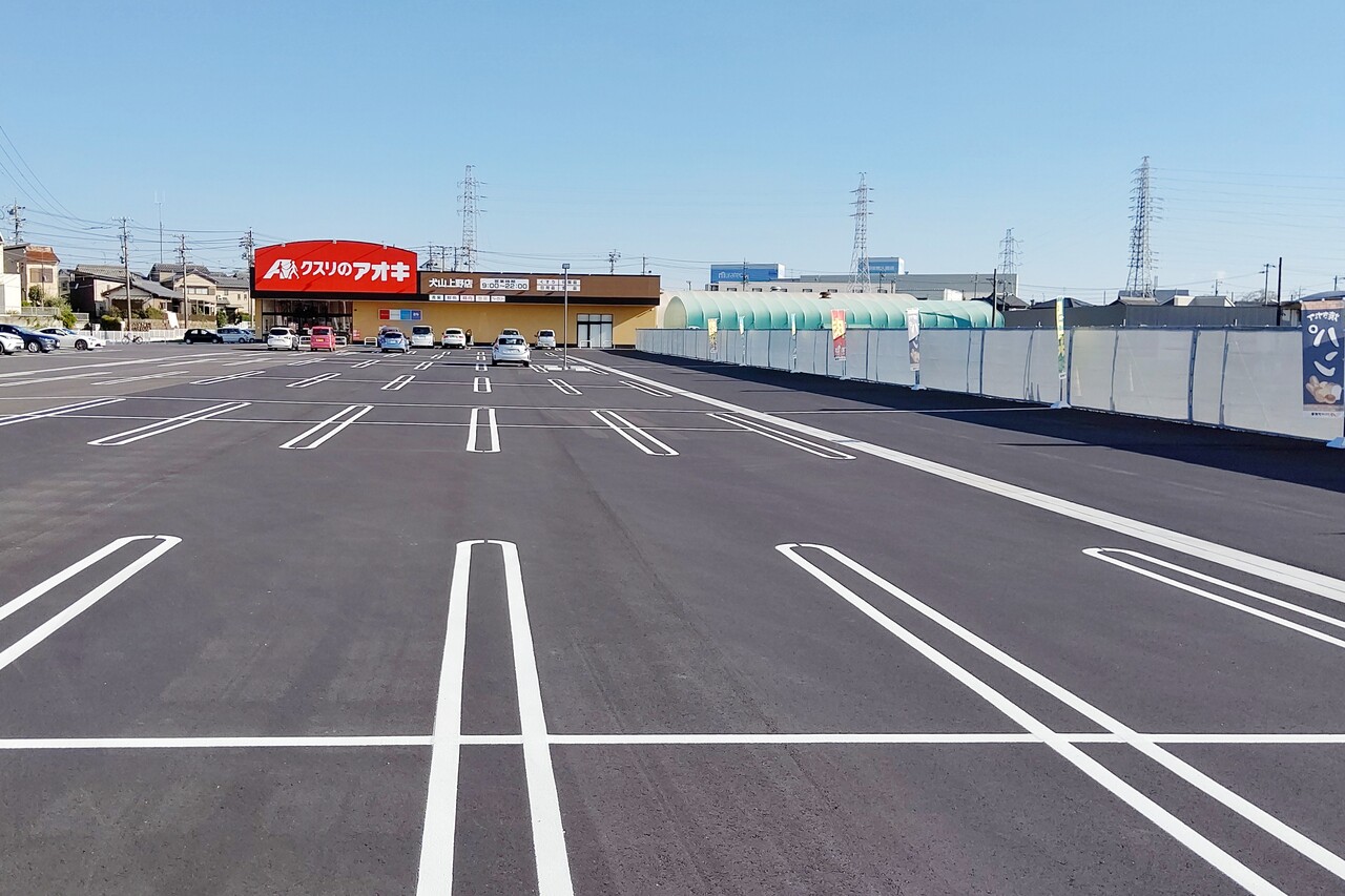 複合商業施設用の駐車場なので、クスリのアオキ一店舗に対してこの駐車場の広さ。