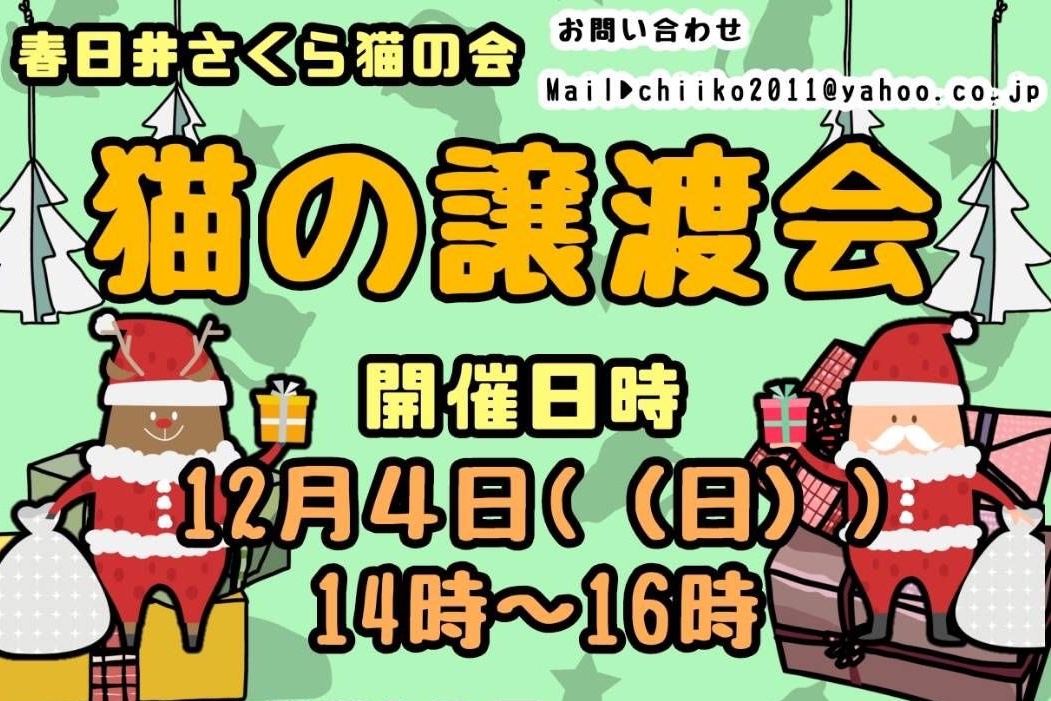譲渡会の日時は12月4日(日)、12月11日(日)14時~16時。