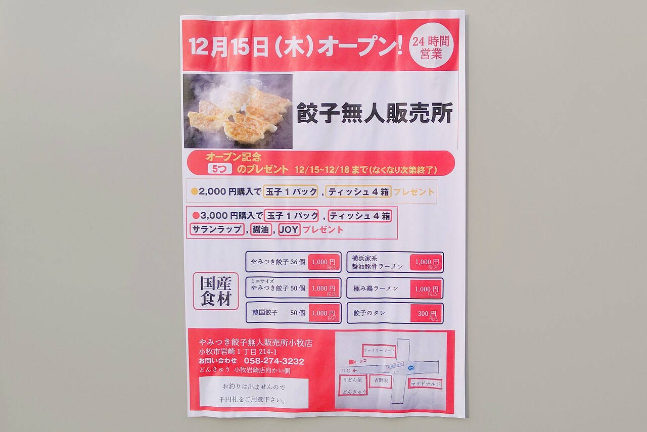 最近は餃子に限らず、無人販売という形態のお店が増えてますね~。