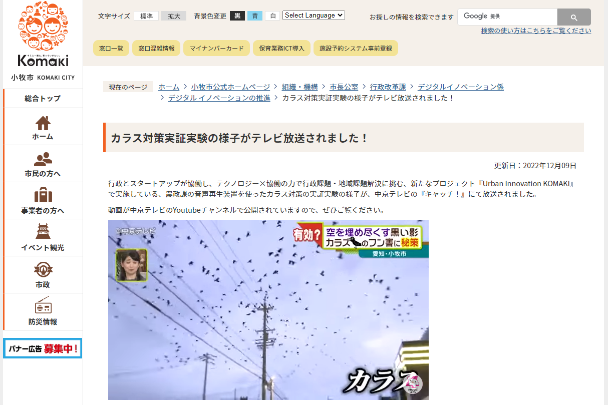 小牧市のカラス対策実証実験の動画がアップされています。