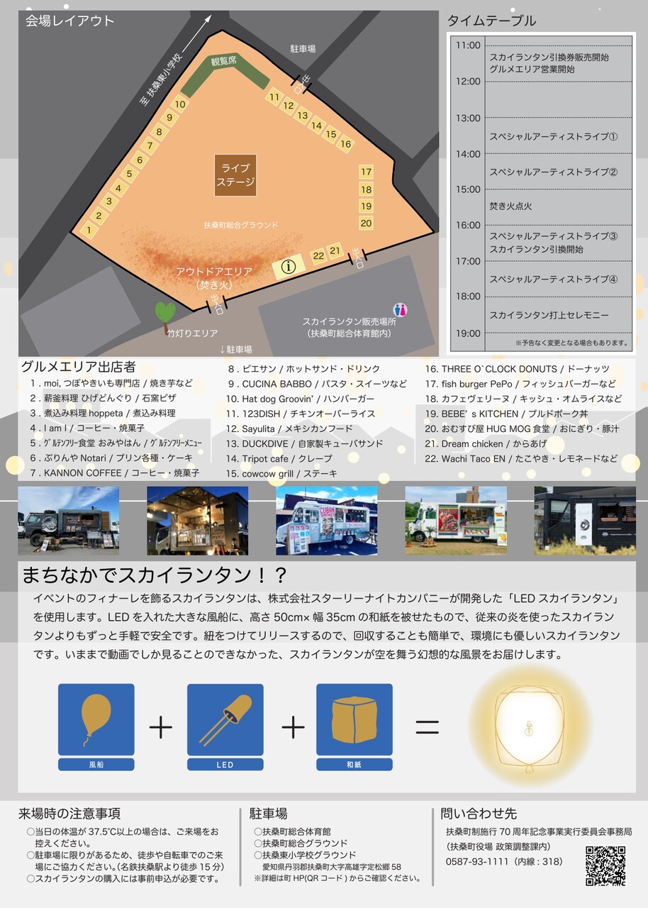 東京・神戸・京都でチケット入手困難なイベントとして有名な「七夕スカイランタン祭り」を主催する”あの”「株式会社スターリーナイトカンパニー」と扶桑町がコラボレーションして実施する”全国的にも珍しいスカイランタンイベント”です。という内容。