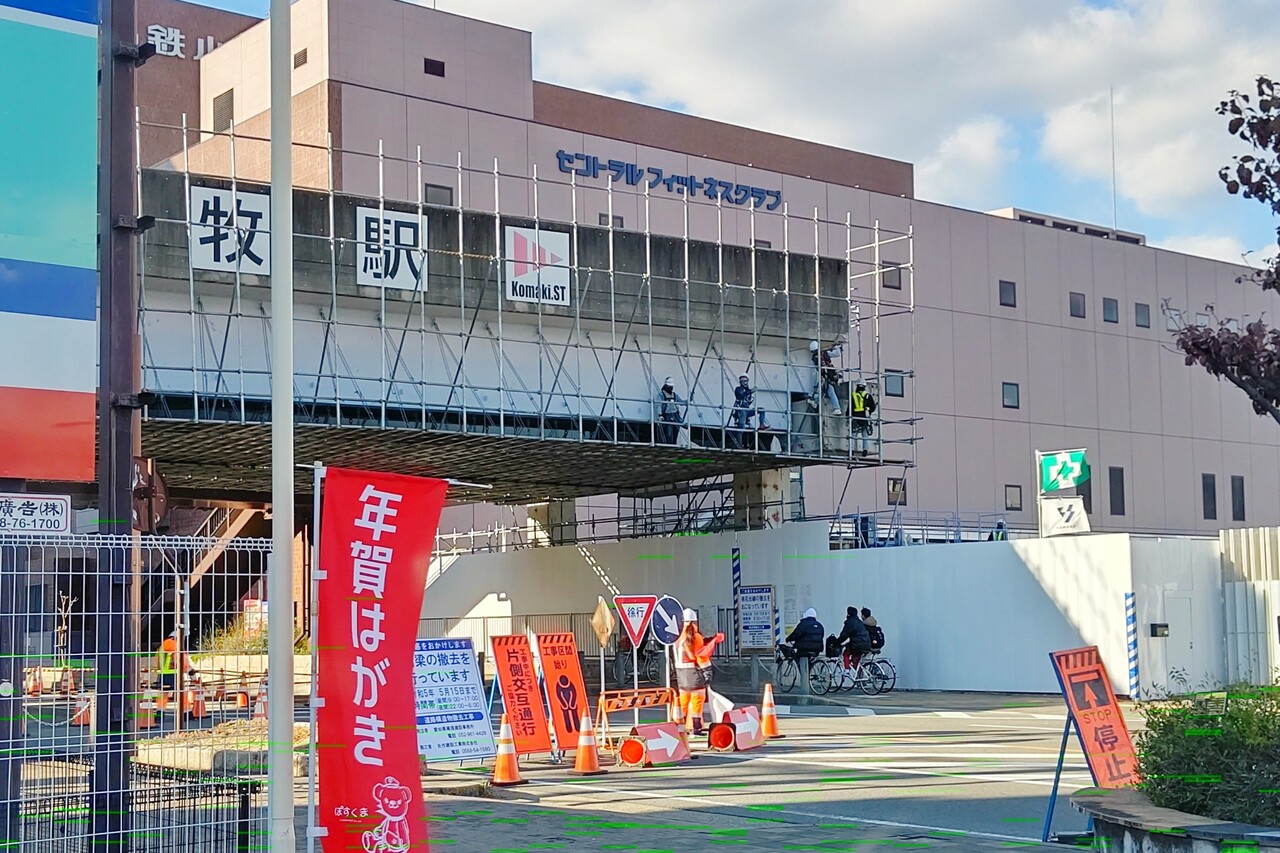 小牧駅のピーチライナー線路U字部分の撤去が始まっています。