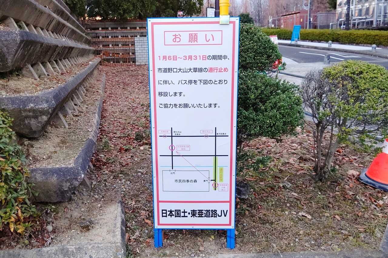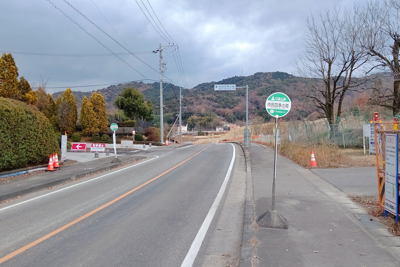 工事が行われる道路にあるバス停『市民四季の森』は移設されます。