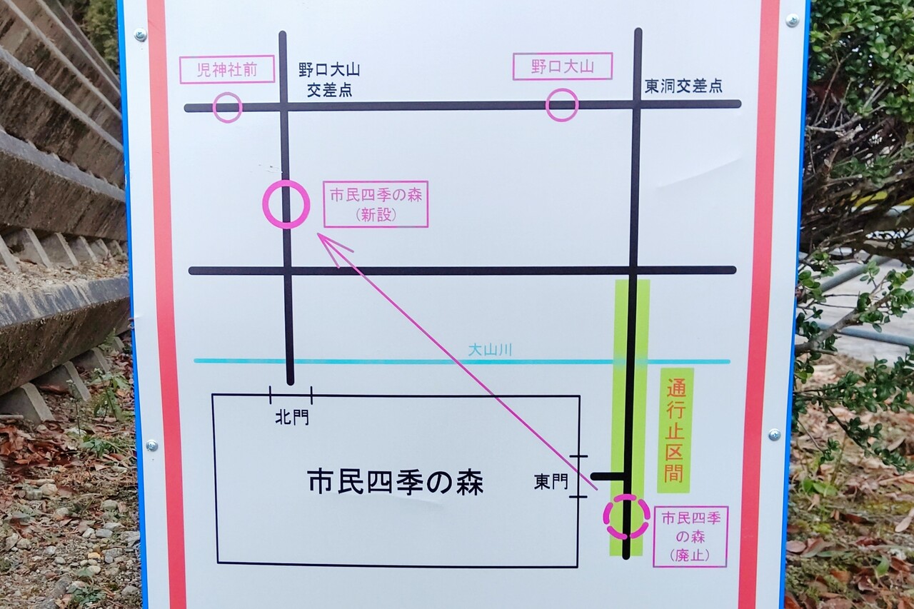 1月6日~3月31日の期間で、市民四季の森東側の道路にて工事を行うため通行規制が行われます。