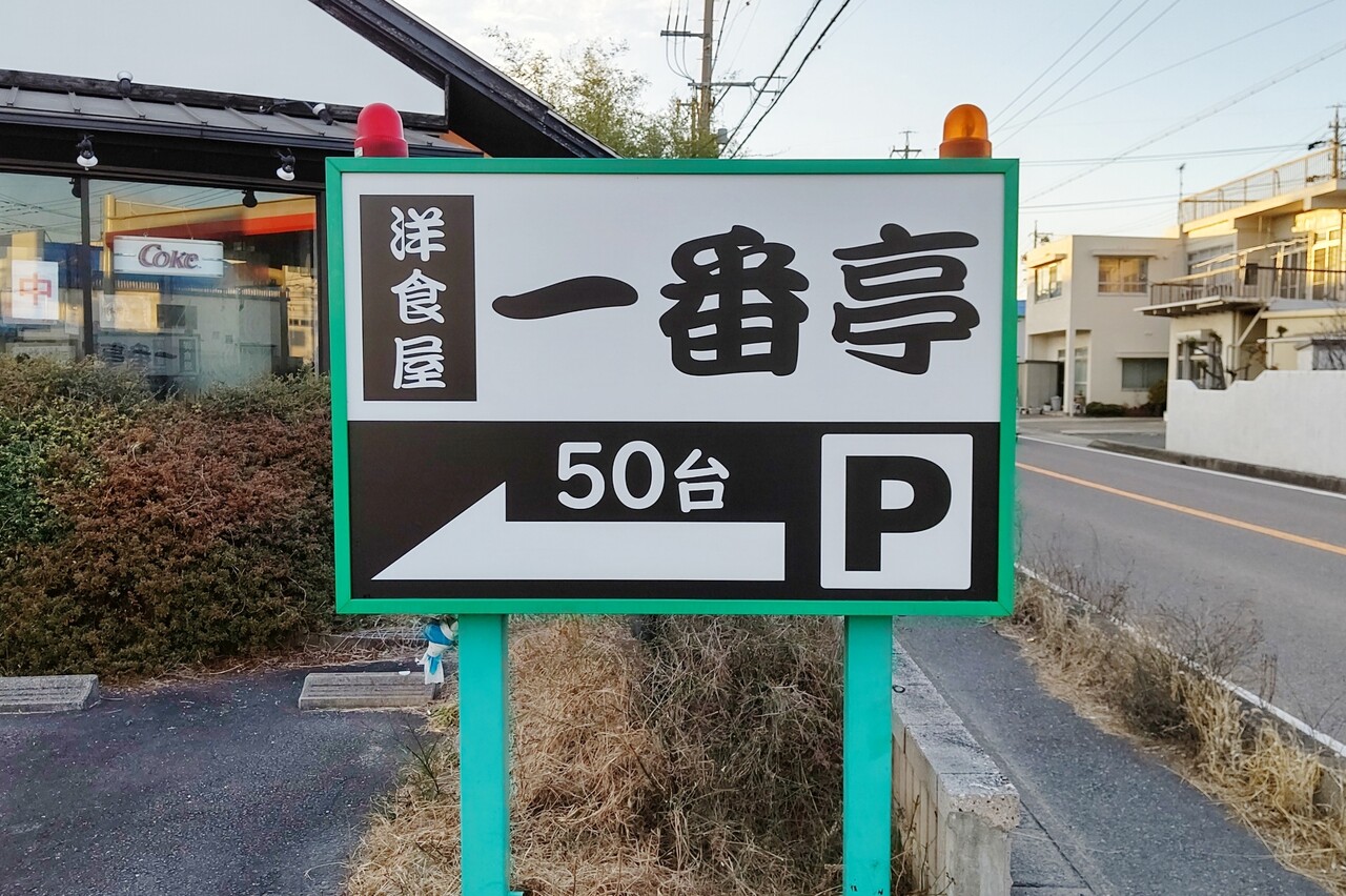 白黒の看板が結構目立ってて分かりやすい。駐車場50台。