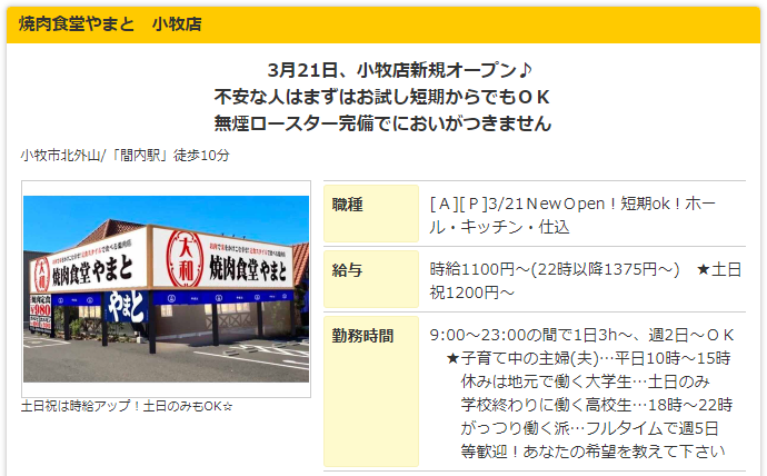 ということで、「焼肉食堂やまと 小牧店」が3月21日にオープン予定だそう。
