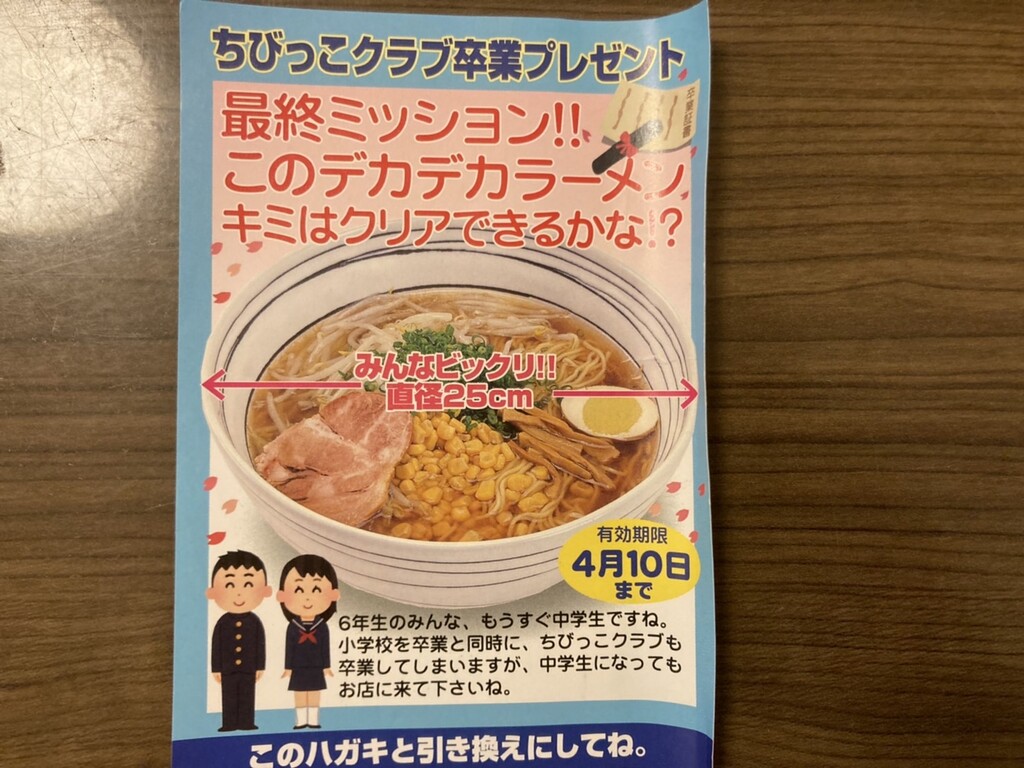 今回は、子供が6年生でちびっこクラブ卒業のため、デカデカラーメンがプレゼントされました。