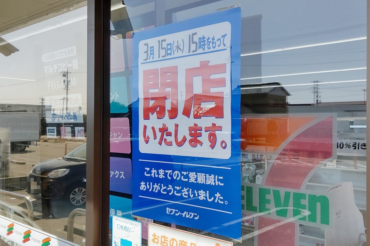 「セブンイレブン 小牧郷中1丁目店」が明日3/15(水)15時をもって閉店するようです。