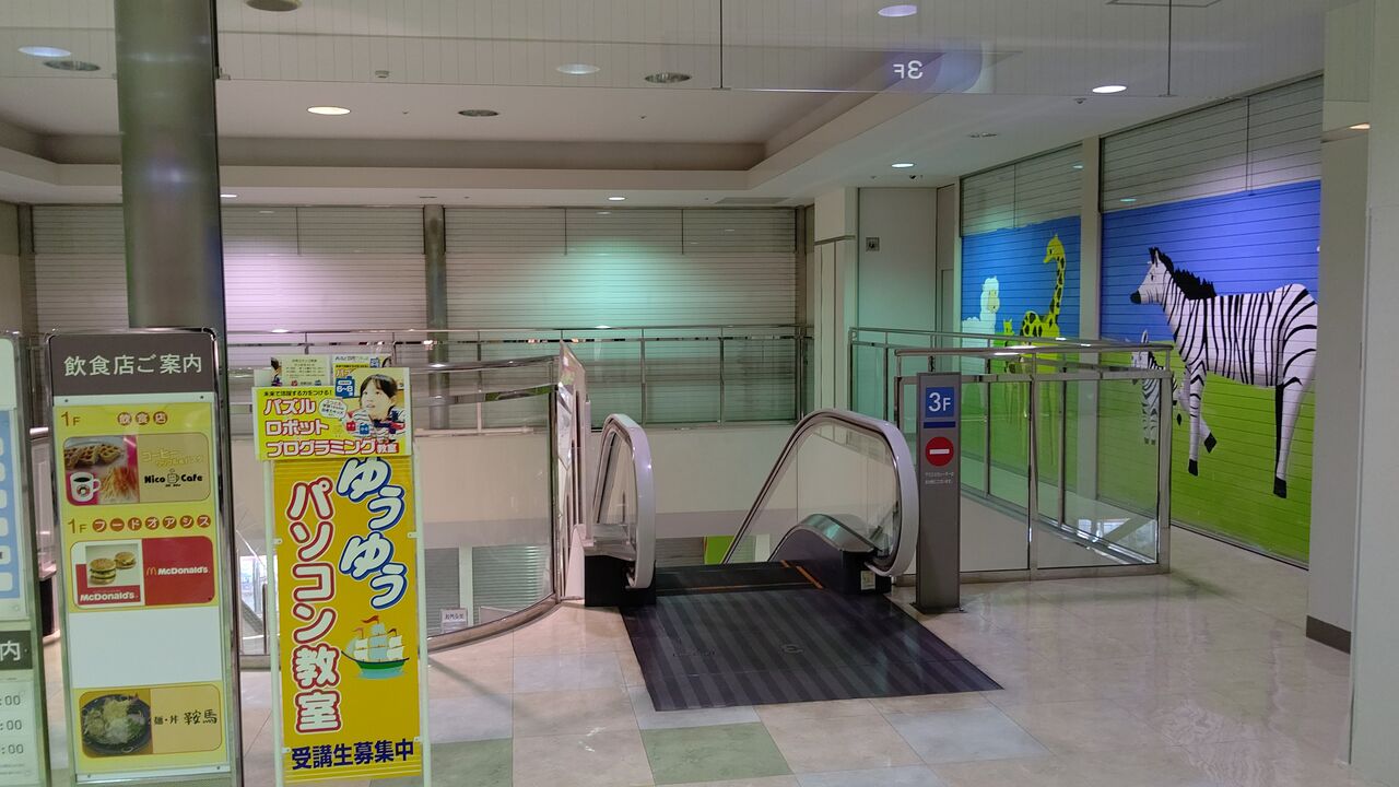 1Fはイトーヨーカ堂や平和堂だった頃と変わらず、食品売り場を中心に昔と変わらない雰囲気だったのですが、上の方のフロアはシャッターが降りている所が目立ちました。