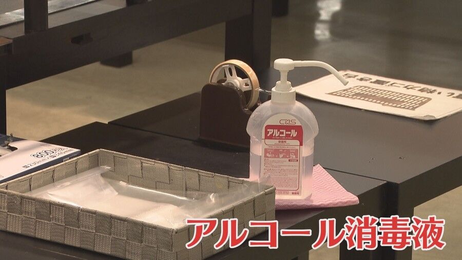 こちらの店では、パン売り場など店内にもアルコール消毒液を設置。