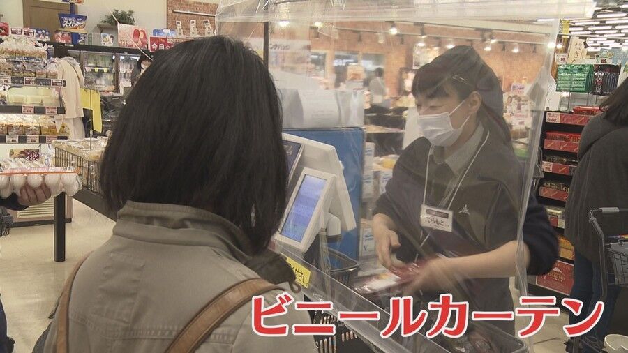 こちらのスーパーが、密接を防ぐため取り入れたのが、レジのカウンター越しに設けたビニールカーテンです。