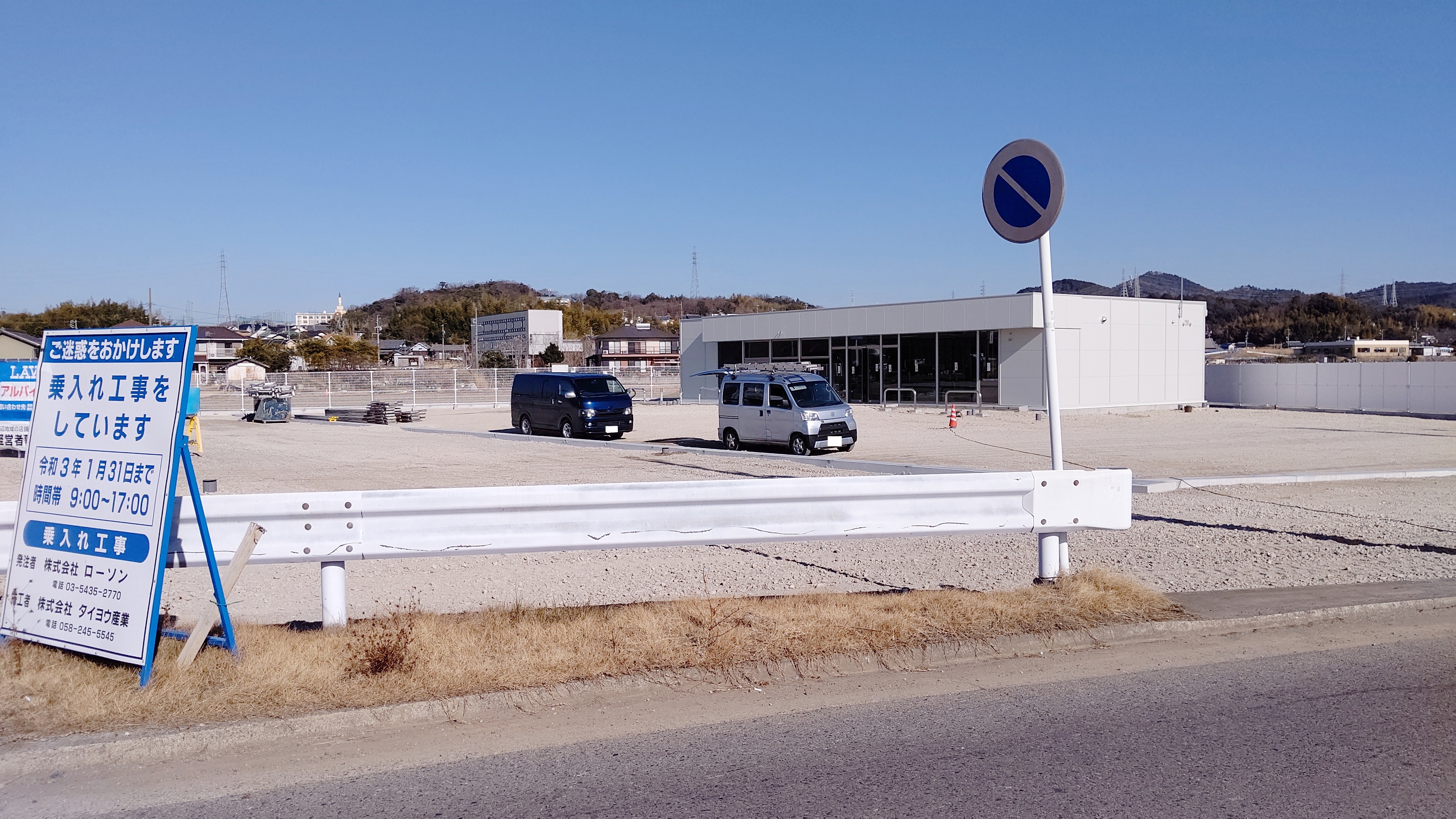 現在、小牧市大字本庄にローソンの新店舗が建設中ですが、随分と完成に近づいていました。