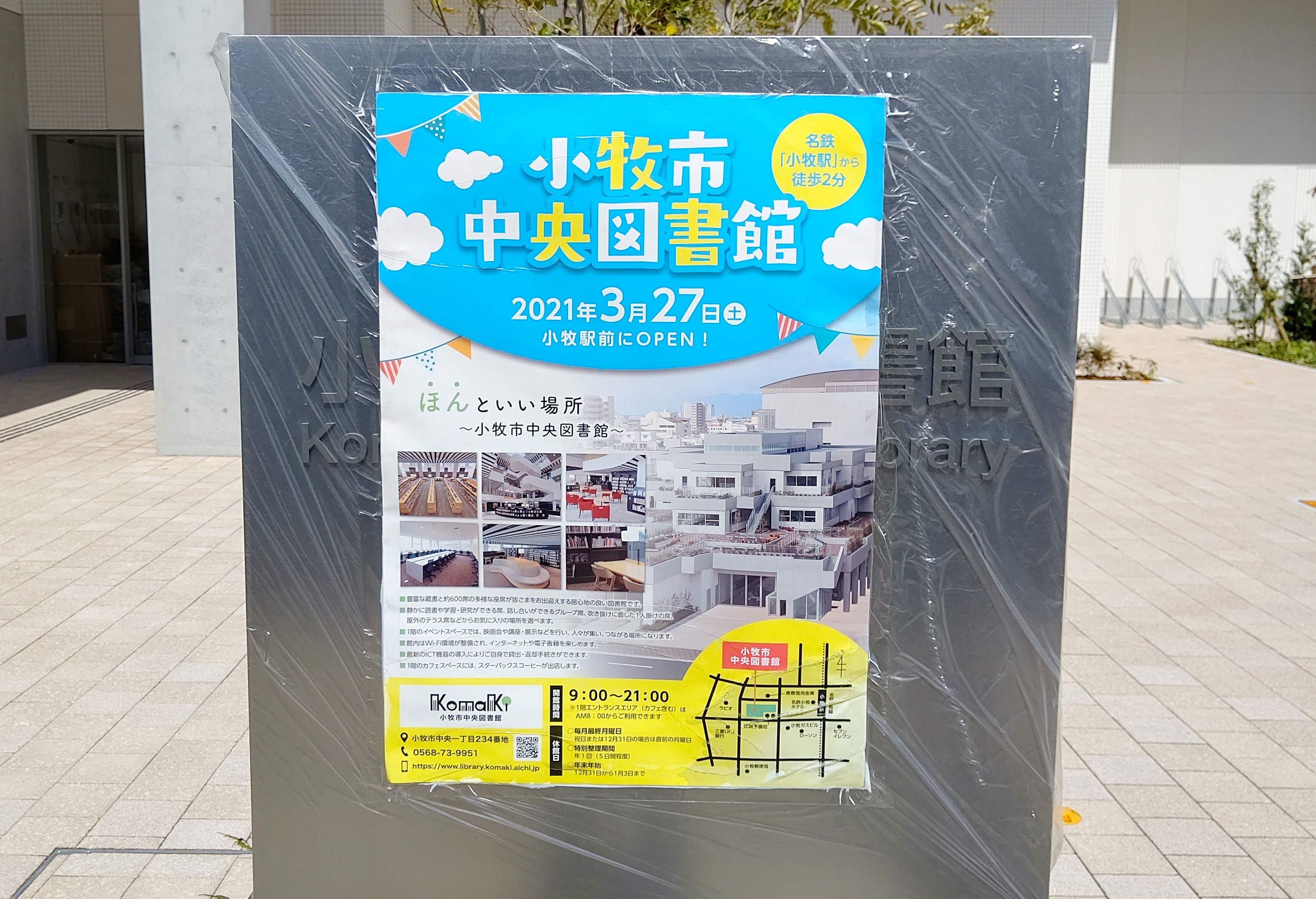 最後に小牧市中央図書館オープンに関する貼り紙です。