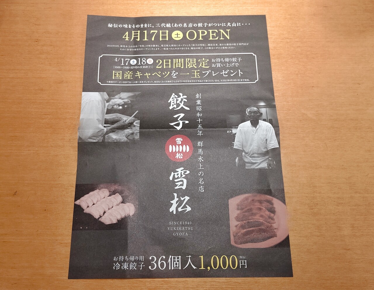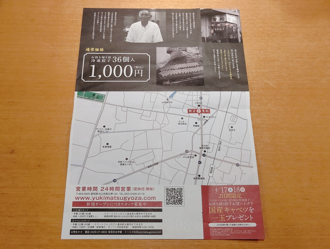 明日4月17日(土)に犬山市西北野に「餃子の雪松 犬山店」がオープンします。