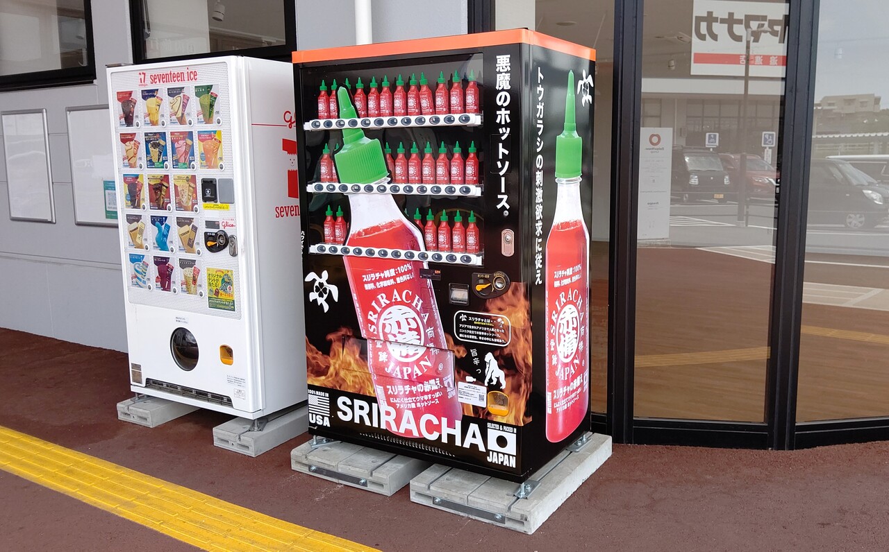 この自動販売機で売っている激辛ソースは「スリラチャソース」と呼ばれ、株式会社スリラチャが販売しています。
