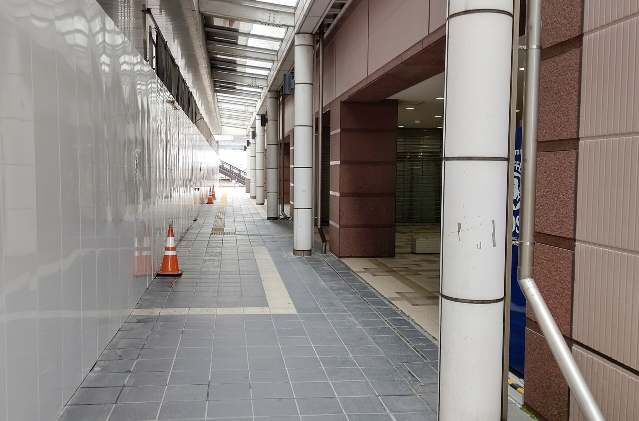 というわけで、今は駅東口~バスターミナルのルートは周り道しないといけません。