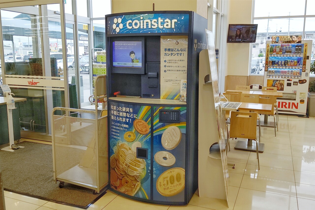 少し前にリニューアルしたスーパーマーケットバロー小牧岩崎店ですが、入り口付近に自動硬貨計算機「coinstar」という機械が置かれていました。