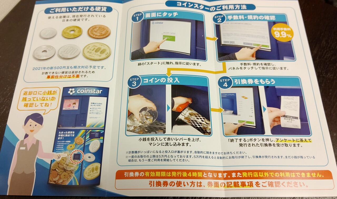 これ、大量の小銭を数えて一枚の引換券にまとめてくれるサービスだそうです。