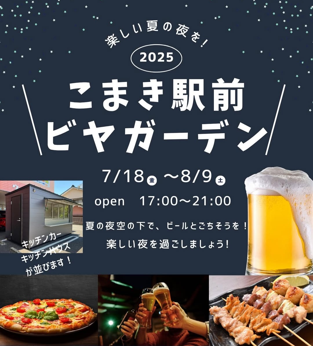 こまき駅前ビヤガーデン』が開催されます。時間帯は17:00~21:00。